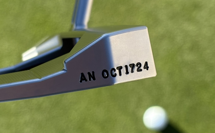 With "AN" representing acoustic neuroma and OCT1724 being the date of his surgery, Chris Garrett wields a putter that has special meaning. Below, the book he has written.