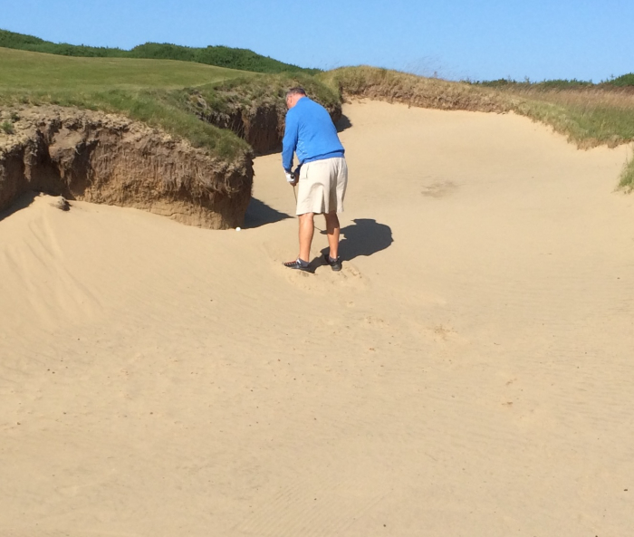 Yes, golf will present you horrible breaks, like this ball in a beguiling position during a trip to Bandon Dunes. But so, too, does it give you the gift of great humor, because when things did not work out well for a wonderful friend (in this case Alex Miceli), even he had to laugh.